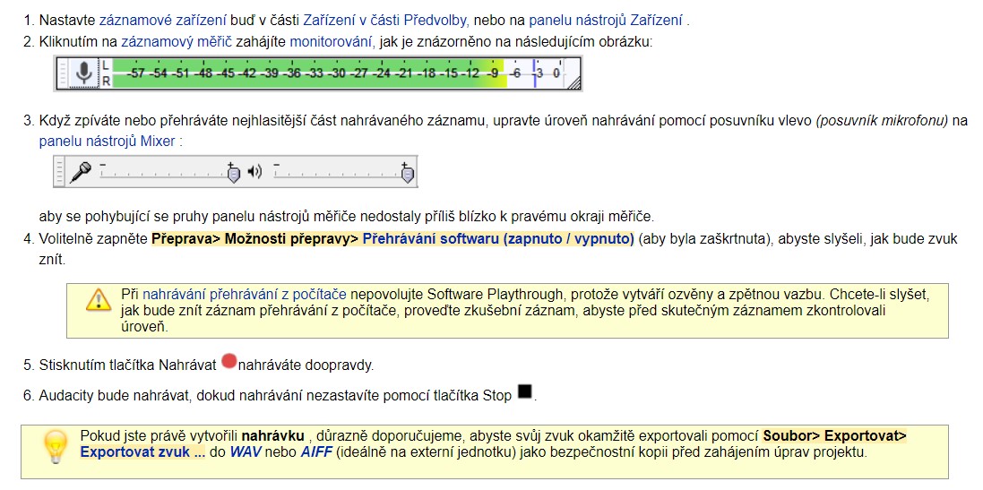 audacity - záznam