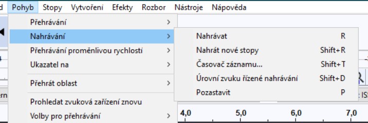 - Nahrávat nové stopy - Shift + R